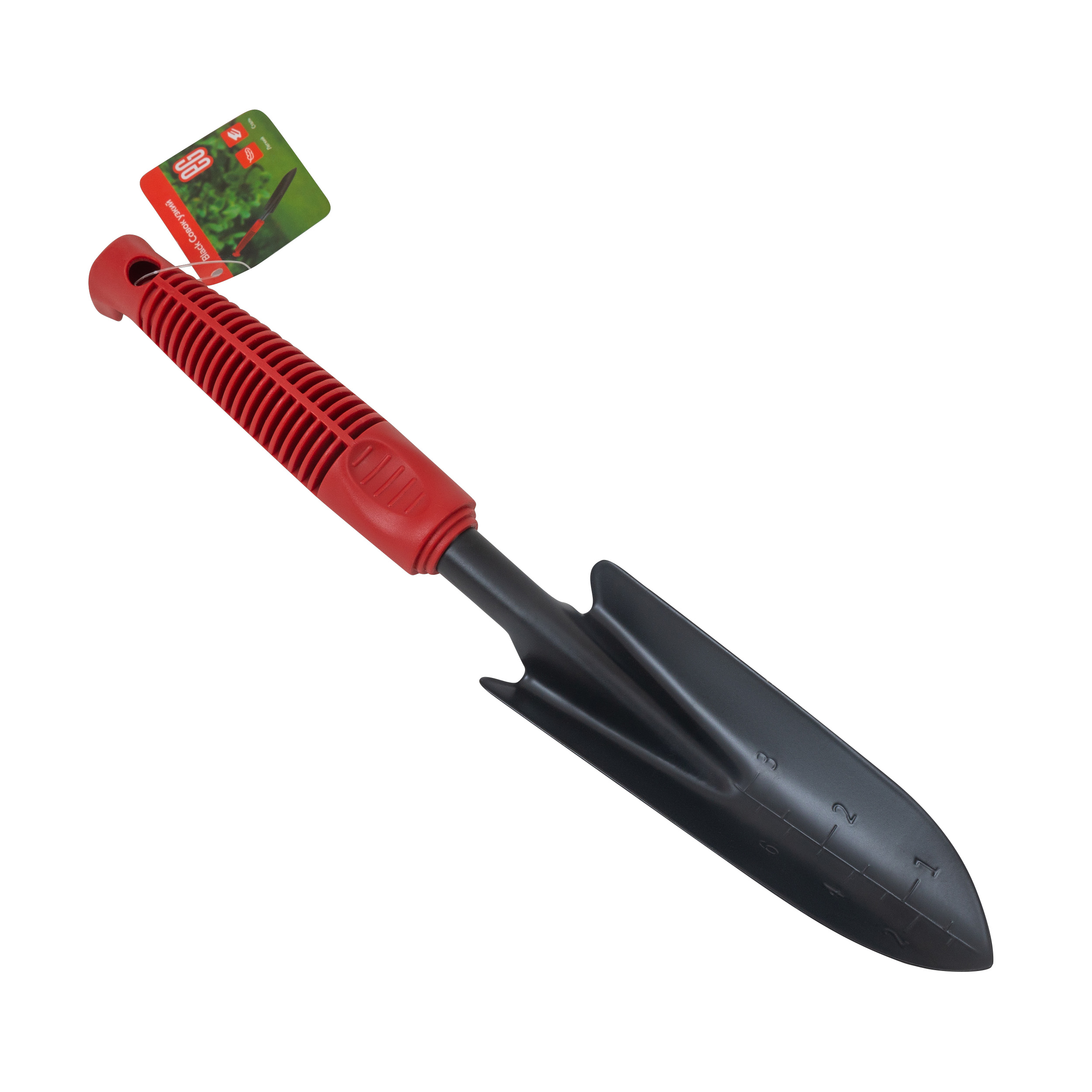 Размеры инструмента составляют 31 × 5 см. Совок имеет клинообразную форму лопатки, благодаря чему перемещение земли, мульчи, растительных остатков гораздо удобнее. Наличие мерной шкалы на рабочей части лопатки позволяет точно измерить объемы субстрата или удобрений.