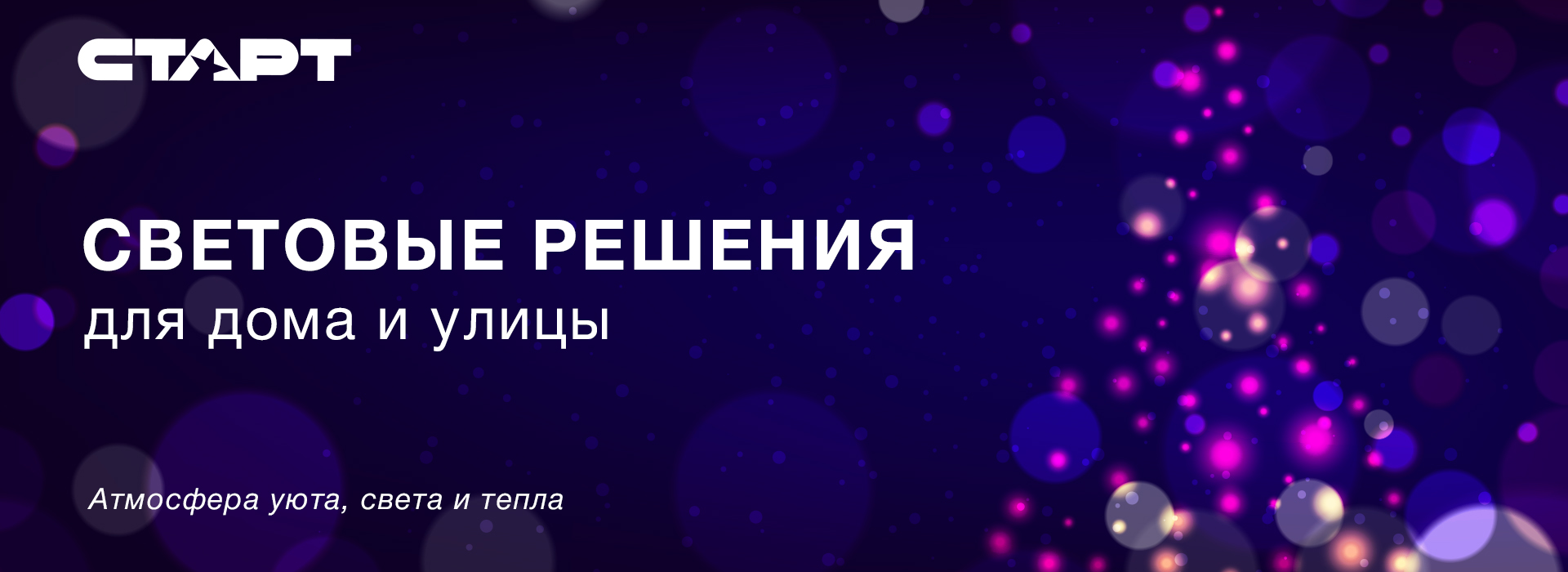 Когда приближаются праздники, особенно важно создать атмосферу уюта, света и тепла. Световые решения СТАРТ помогут подчеркнуть стиль дома, фасада или садового пространства и добавить выразительный акцент. В ассортименте представлены варианты для улицы и интерьера, которые легко комбинируются между собой.