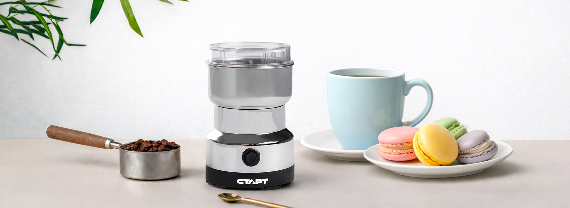 Электрическая кофемолка СТАРТ станет подходящим подарком для себя или близких, кто любит начинать день с чашки ароматного кофе, приготовленного из свежемолотых зерен.