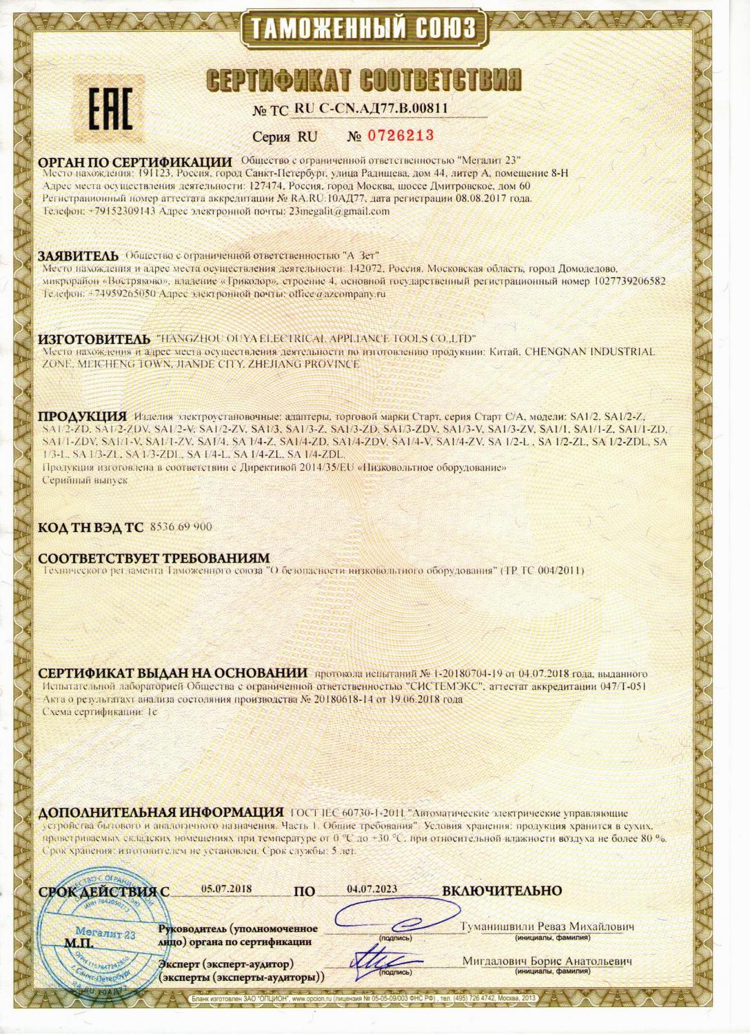 Сертификат соответствия – документ, подтверждающий соответствие продукции требованиям качества и безопасности, установленными для нее действующими стандартами и правилами.